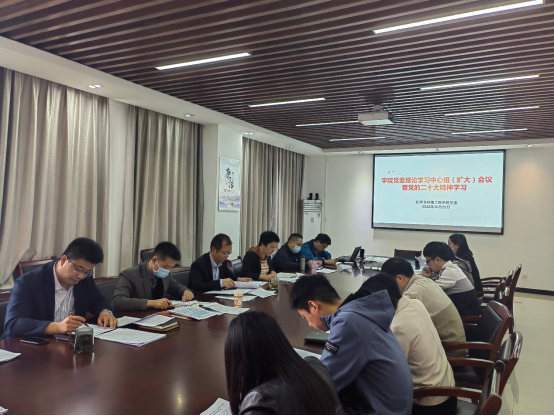 10月25日,学院在化工楼703会议室召开党委理论学习中心组(扩大)会议暨党的二十大精神学习会议,传达学习党的二十大精神及省委书记王蒙徽在湖北省传达学习党的二十大精神会议上的重要讲话。学院班子成员、党委委员出席,教工、员工党支部书记参加会议,公司党委书记张宗良主持并讲话。他强调,深入学习党的二十大精神是全院师生政治生活中的一件大事,学院各部门(党组织),要坚持深学细悟,切实把思想和行动统一到党的二十大精神上来;要坚持笃行实干,切实把党的二十大精神转化为推动学院高质量发展的生动实践;要加强学习宣传,切实推动党的二十大精神广泛深入为学院全体师生所了解和掌握。
