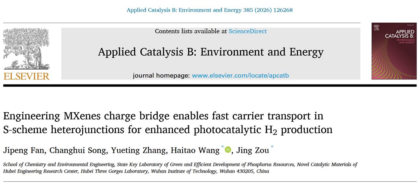 (通讯员程然)近日,公司伟德国际1949官网催化与固废协同创新团队在国际知名期刊Applied Catalysis B: Environment and Energy(IF=21.2,中科院一区TOP)上发表题为“Engineering MXenes charge bridge enables fast carrier transport in S-scheme heterojunctions for enhanced photocatalytic H2 production”的最新研究成果。伟德国际1949官网为论文唯一署名单位,2025级博士研究生凡纪鹏为论文第一作者,王海涛副教授与邹菁教授为该论文共同通讯作者。