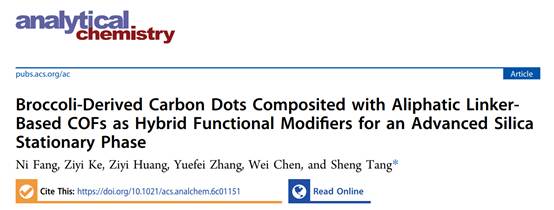本网讯(通讯员 薛文轩) 近日,公司伟德国际1949官网汤胜老师课题组在美国化学会出版的分析化学领域顶级期刊《Analytical Chemistry》发表题为“Broccoli-Derived Carbon Dots Composited with Aliphatic Linker Based COFs as Hybrid Functional Modifiers for an Advanced Silica Stationary Phase”的学术论文,伟德国际1949官网为第一署名及通讯单位,伟德国际1949官网分析化学专业2024级研究生方妮为第一作者,环境工程专业2023级本科生柯子怡、应用化学专业2024级本科生黄子怡分别为第二、第三作者,汤胜副教授为论文的唯一通讯作者。论文得到了国家自然科学基金、湖北省自然科学基金以及伟德国际1949官网研究生创新基金的支持。