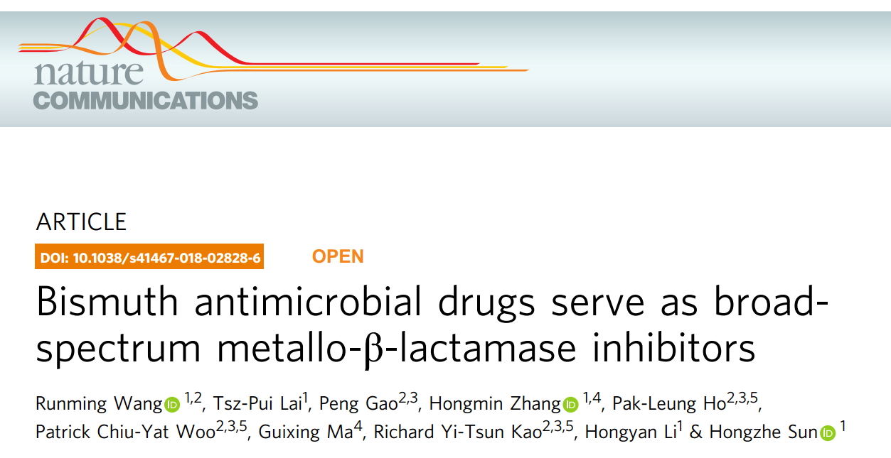 (通讯员:赵慧平)日前,国际权威杂志《自然通讯》(Nature Communications)发表了香港大学理学院化学系孙红哲教授和李嘉诚医学院微生物学系高一村博士领导的研究团队关于含铋的抗菌药有望发展为临床抗菌药的最后防线,在研发全新的抗生素以外,开拓对抗超级恶菌的新途径的最新研究成果。这一研究成果得到香港各大网站与媒体的争相报道。公司员工王润铭为该研究工作的第一作者。王润铭员工2012年毕业于伟德国际1949官网食品科学与工程专业,同年考入公司分析化学专业研究生,师从陈嵘教授。后推荐到香港大学化学系攻读博士学位。