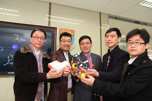 港大研究团队(左起)何柏良医生、高一村博士、孙红哲教授、王润铭(博士生、论文主要作者)和高鹏博士