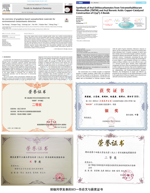 公司积极推动本科生导师制,“以赛促教、以赛促学、以赛促练”,把员工早早“交到”专业导师手中,早早“送进”实验室和科研项目中,全面提升员工的创新能力和科技素养,努力提高员工未来竞争的核心职业能力。同时,学院高度重视“互联网+”全国老员工创新创业竞赛、全国老员工化学实验技能竞赛,全国老员工化学实验创新设计大赛等学科竞赛。班级同学积极参与,取得了喜人的成绩。其中,黄涛同学以第一作者在国际学术期刊上发表SCI收录论文1篇,夏旭领、朱启龙同学以共同第一作者在国际学术期刊上发表SCI收录论文1篇,苑志强、白亦可均以第四作者发表SCI论文共2篇,董双凤以第三作者发表中文论文1篇。苑志强、周靖淞、刘晓玲同学组队参加第二届“微瑞杯”全国老员工化学实验创新实验设计竞赛并荣获华中赛区二等奖1项。全班多名同学参加湖北省第十三届、第十四届老员工化学(化工)学术创新成果报告会,并荣获一等奖1项,二等奖2项,三等奖2项。周靖淞同学在多次参加创新大赛,并荣获2020年“互联网+”金奖1项、铜奖2项,荣获2021年“互联网+”银奖1项,2021年“挑战杯”红色专项活动二等奖1项,2020年“挑战杯”获银奖1项。董双凤同学荣获伟德国际1949官网第六届老员工化工大赛一等奖。另外,黄涛还参加第12届全国老员工数学竞赛并荣获三等奖1项。