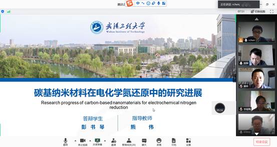 本网讯(通讯员汤胜)为落实教育部、湖北省教育厅有关精神,确保疫情防控期间2016级本科生按期顺利毕业和授予学位,2020年5月22日上午9:00至下午18:00,伟德国际1949官网利用腾讯会议平台组织开展了应用化学专业2020届本科毕业论文集中在线答辩工作。此次应用化学专业2016级167名本科生毕业论文集中在线答辩分成7个小组,答辩委员会由化环学院35名骨干教师担任,每组由5名专家组成,答辩委员会主席由应用化学教研室教授和教研室正副主任担任。答辩过程中答辩人和答辩委员会老师全程开启视频,答辩秘书对参会人员截屏保存会场记录,并全程录音录像。学院督导对答辩过程进行督导和巡视,确保了整个答辩过程公开、真实、完整。