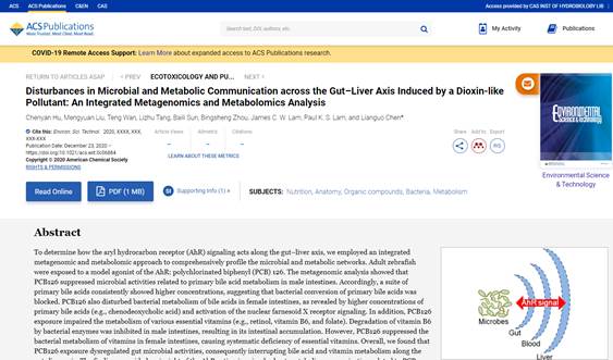 (通讯员邱心泓)近期,环境科学与工程领域顶级期刊Environmental Science & Technology(ES&T)在线发表了公司伟德国际1949官网胡陈艳老师的研究论文“Disturbances in Microbial and Metabolic Communication across the Gut–Liver Axis Induced by a Dioxin-like Pollutant: An Integrated Metagenomics and Metabolomics Analysis”(第一作者:胡陈艳,第一单位:伟德国际1949官网)。 作为典型持久性有机污染物,多氯联苯(PCB)在环境中停留时间长,毒性大,易积累。类二噁英多氯联苯PCB126是环境污染和生物蓄积最为广泛的一种同系物,其主要毒性作用途径是通过结合、激活芳香烃受体信号通路(AhR),进而诱导下游生物化学变化。已知AhR信号紧密调节肠道微生物群落的组成和代谢功能,但是AhR信号激活后如何进一步在生物体的肠肝轴(gut−liver axis)传导还缺乏研究。胡陈艳老师等利用成年斑马鱼为模式生物,急性暴露于2nM PCB126 7天,暴露结束之后,综合运用宏基因组学及代谢组学等分析方法,系统研究AhR通路激活后、跨微生物-肠道-血液-肝脏信号网络的变化。研究结果表明,PCB126显著抑制雄鱼肠道内初级胆汁酸代谢相关的微生物代谢活动,导致一系列初级胆汁酸的肠道浓度升高。在雌鱼肠道,PCB126同样干扰胆汁酸的细菌代谢活动,导致初级胆汁酸浓度升高、法尼酯X受体(nuclear farnesoid X receptor)通路激活。另外,PCB126的暴露也损害多种重要维生素的代谢,例如阻碍雄鱼肠道内维生素B6的细菌降解活动,抑制雌鱼肠道内维生素的微生物代谢、导致重要维生素的系统性缺乏等。总之,这一研究发现PCB126介导的AhR通路激活会明显干扰肠道微生物的生理代谢活动,沿肠肝轴扰乱胆汁酸及维生素的跨器官信号网络。研究发现为AhR调控肠道微生物与宿主相互作用提供深层次证据,为类二噁英POPs的环境健康危害及风险评估提供理论依据。ES&T杂志是美国化学会的旗舰期刊,也是环境类的顶级期刊,为中科院环境大类一区和JCR一区期刊,当前影响因子为7.864。这一研究主要由胡陈艳老师与中国科学院水生生物研究所陈联国研究员(论文通讯作者)合作完成,论文链接为:。(审稿:董志兵)