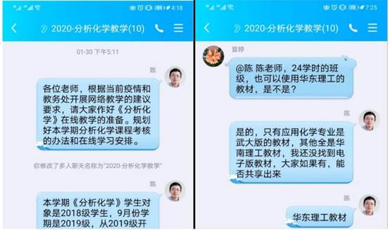 精心备课,团队合作雕琢课程内容。按照学校学院的部署,《水污染控制工程》课程组在课程负责人张莉教授的带领下,充分利用湖北省省级资源共享课平台的教学资源早在2月初就积极备课,分工合作,课题组从课程内容到授课形式,认真设计并精雕细琢,以切实保证线上教学效果,让每位员工都学有所获,学有所得。《分析化学》的理论教学涉及化工制药类、生物类、环境工程类和应用化学等专业,授课内容和要求各不相同,课程组针对不同专业类别的分析化学教学,在 QQ 群讨论的基础上制定了不同的教学目标及在线教学的思路和方式。课题组对化工与制药类、生物类和环境科学类专业,建议采用公司已经开课的《分析化学》SPOC 课程进行教学;对于应用化学基地班及环境工程类,推荐采用中国大学 MOOC 等教学平台的 MOOC 进行教学。同时,也鼓励老师采用自己擅长的方式开展在线教学。授课老师们提前进行网络模拟试播,对授课软件进行测试,为避免网络的不稳定性,授课采用“录播+直播”的形式,提前录制好视频资源,确保线上教学过程顺畅。