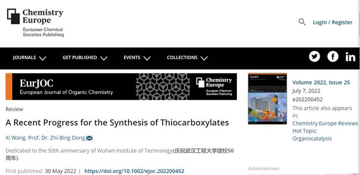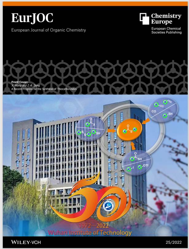 本网讯(通讯员程然)近期,公司化环学院董志兵教授课题组在著名有机化学期刊European Journal of OrganicChemistry发表了题为“A Recent Progress for the Synthesis ofThiocarboxylates”(DOI: doi.org/10.1002/ejoc.202200452)的封面论文(第一作者:王曦,通讯作者:董志兵)。该期封面以学校大化工楼和学校50年校庆LOGO为背景,对近期硫酯类化合物的合成方法和应用进展进行了全面介绍,同时,该论文也是对该课题组近期在有机硫化学领域的思考和总结。该论文利用国际著名学术期刊为平台,积极推介公司,为公司50年校庆营造了良好的学术氛围,对提升公司的综合影响力和社会美誉度都有积极的意义。