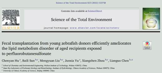 伟德国际1949官网胡陈艳博士与中国科学院水生生物研究所陈联国研究员利用斑马鱼为模式生物,通过移植年轻斑马鱼粪便到老年斑马鱼,发现粪菌移植可彻底拮抗PFBS的内分泌干扰效应和生殖毒性,将老年个体的内分泌系统重塑为年轻表型,促进卵子发育,提高繁殖能力。同时,另一工作也发现粪菌移植可以显著促进老年个体的生长,减轻老龄化及PFBS引起的肝组织损伤。对老年动物的脂质代谢能力也具有显著激活能力,能有效地抑制由老龄化或/和PFBS引起的代谢异常,将血液甘油三酯的浓度恢复至年轻动物的水平(此工作发表于另一Top期刊Science of the Total Environment(Hu et al, 2022, 823, 153758;IF:10.753))。以上研究为粪菌移植在环境与健康领域的应用提供了新的思路,将助力粪菌移植成为污染物毒性干预及健康老龄化的新策略。