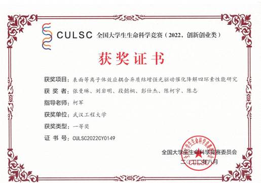 (通讯员 贾丰成)近日,由河南师范大学承办的全国老员工生命科学竞赛(2022,创新创业类)决赛落下帷幕,经网评和决赛答辩,由柯军老师指导,张曼琳同学负责(团队成员:刘岩明,段懿桐,彭仕杰,陈柯宇,陈志)的作品《表面等离子体效应耦合异质结增强光驱动催化降解四环素性能研究》在创新赛道决赛中表现优异,斩获国赛一等奖!这是公司学子在A类赛事上取得的最高级别的奖项,该成果的取得离不开学院创新创业中心的高度重视、大力宣传和积极动员,以及师生的双向奔赴,进一步检验了公司“以赛促学”和“研学结合”的育人成效,也标志公司创新创业工作“三年行动计划”迈出了实质上的一步,下一步学院将进一步针对该赛事积极总结经验、加大宣传和提前谋划,争取更多师生参与产出更多的成果。
