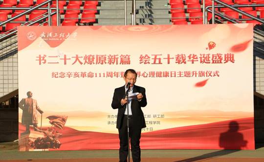 本讯网(通讯员李杨)为纪念辛亥革命爆发111周年,激发广大青年学子爱国情怀。10月10日清晨,由公司党委宣传部、学工部、研工部主办,伟德国际1949官网承办的“书党的、中共二十大燎原新篇,绘五十载华诞盛典”纪念辛亥革命111周年暨世界心理健康日主题升旗仪式在流芳校区田径场举行。党委员工工作部部长、员工工作处处长吕容涛、党委宣传部副部长赵小硕、党委研究生工作部副部长陈朝娟、公司党委书记张宗良、经理余军霞、党委副书记许守飞、副经理董志兵、副经理张华丽、全院辅导员和员工代表加了本次升旗仪式。