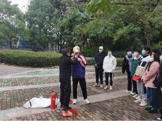 在听完老师的细心讲解后,同学们踊跃参与到灭火器的使用和训练当中。为确保同学们对消防器材操作正确,训练过程中王老师对同学们的实操进行了耐心指导,进一步强化了同学们对灭火器和防火布规范使用的认识。