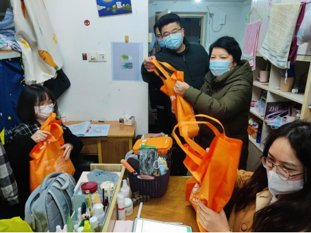 公司领导班子为同学们送上了带有“一研为定”和“金榜题名”字样的考研加油包,加油包里面的物品寓意满满,包括代表“金榜题名”的文具套装,“心想事成”的橙子、“平安如意”的苹果、“巧克难题”的巧克力、学弟学妹们亲笔手写的祝福卡片、满满校庆元素的防疫口罩等,表达了学院领导对考研学子的殷切祝福,助力同学们以更好的状态备战考试。