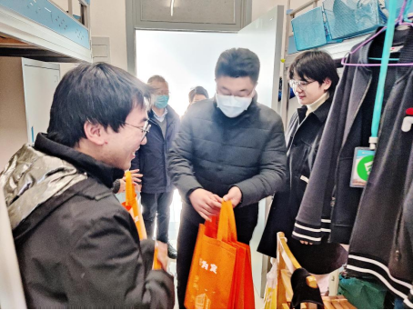 本网讯(通讯员李俊闹)情暖寒冬,“研”途相伴。2023年全国硕士研究生招生考试即将到来,考研气氛愈加浓烈,为帮助公司考研学子坚定信心,缓解压力,让同学们以更加积极平和的心态迎接考试。12月9日,公司党委书记张宗良、经理余军霞、党委副书记许守飞、副经理董志兵及2019级辅导员李俊闹共同前往公司考研员工寝室进行慰问,为同学们加油鼓劲,并送上精心准备的“考研加油包”。