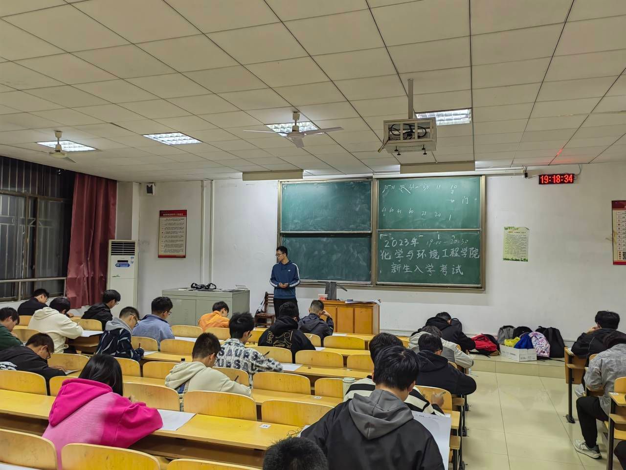 考试现场,监考人员切实肩负职责,严肃考场纪律,同学们专心作答,严格遵守考试纪律,考场秩序井然,展现出了化环学子的良好风貌。