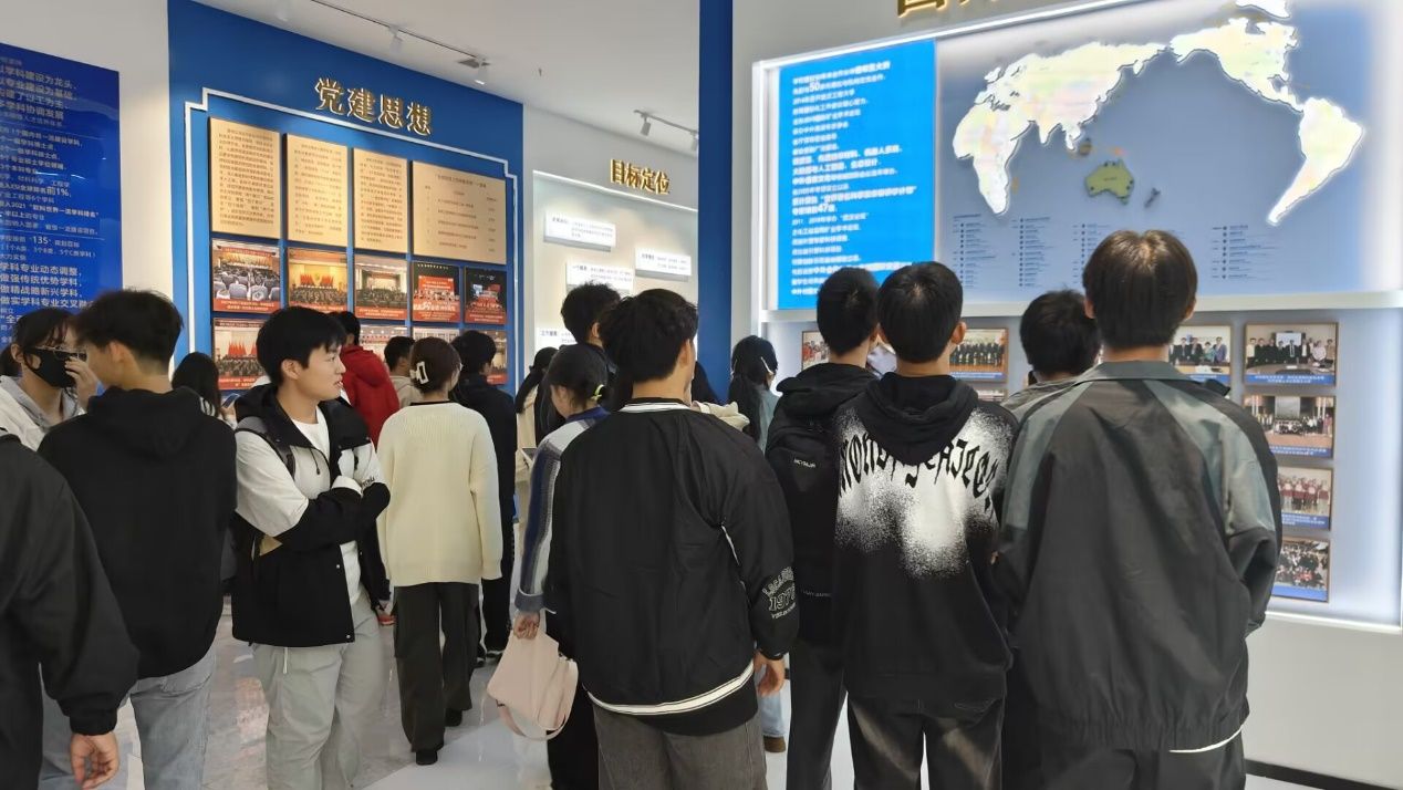 在讲解员的带领下,同学们沿着“发展历程”、“党建思想”、“目标定位”、“未来展望”、“领导关怀”等多个板块参馆,同学们仔细聆听、认真观看,看着学校在各个领域取得的丰硕成果,大家心中的自豪感油然而生,身为工大学子感到无比骄傲。