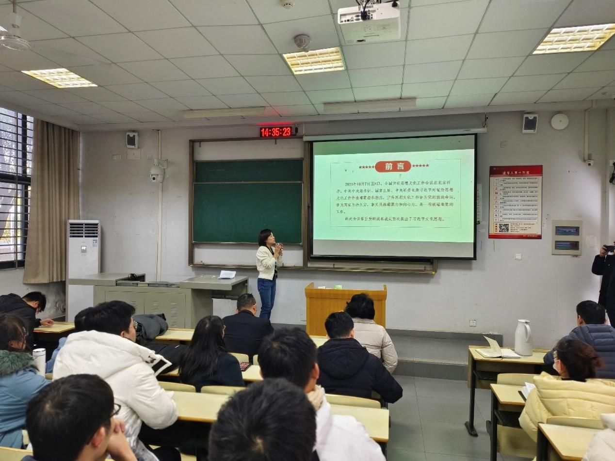 韩雪吟以“赓续历史文脉,谱写当代华章”为题,从习近平文化思想的鲜明特征、中华文明的突出特性、文化传承的重要意义、笃定前行建设中华民族现代文明四个方面进行讲授。她深入浅出地带领大家解读“习近平文化思想”的精髓,以深入的理论、丰富的案例,阐释了“习近平文化思想”的时代价值,使老师同学们更好的理解了学习贯彻习近平文化思想的必要性和重要性。