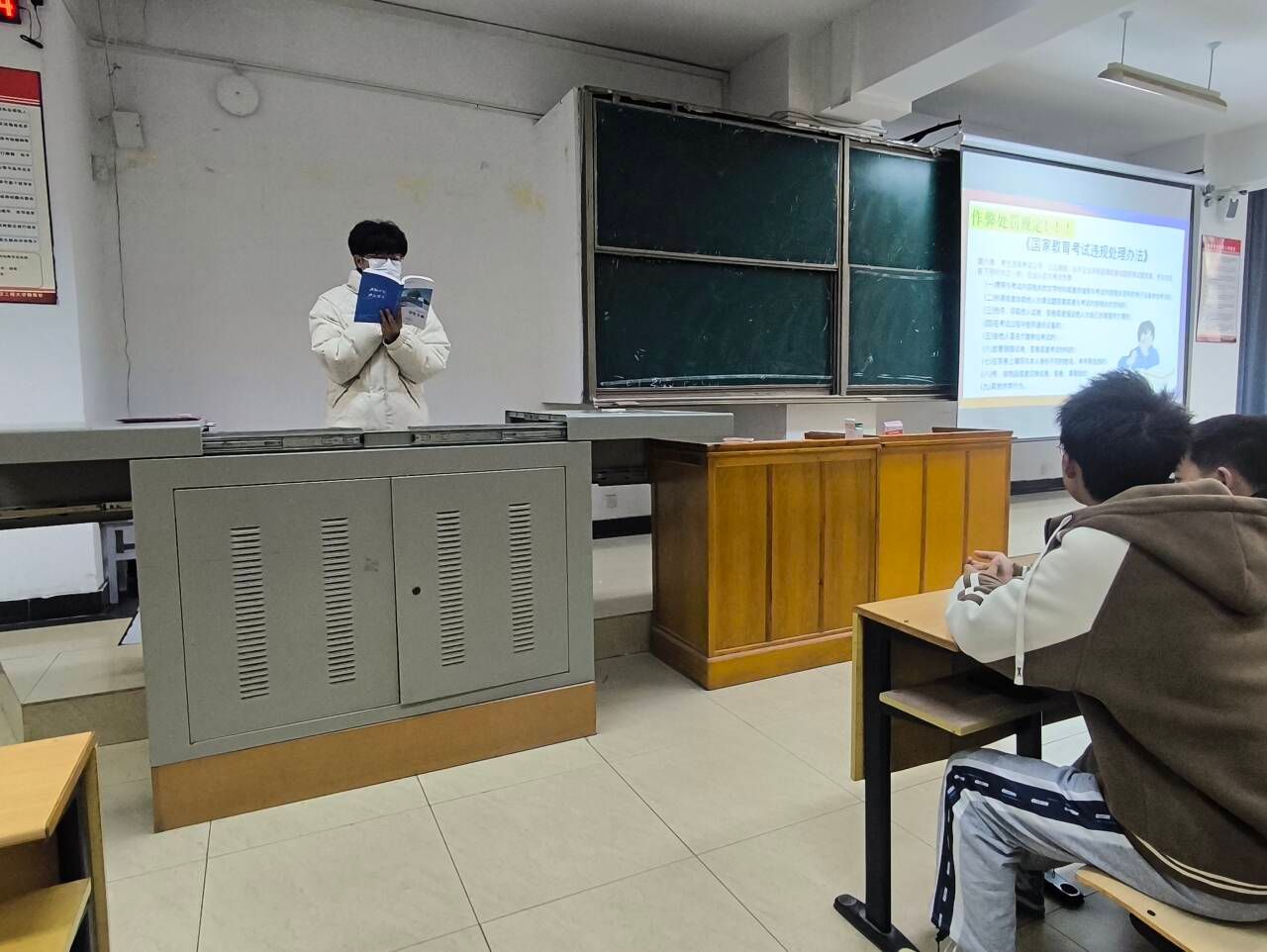 会议中,杨依婷从“考前及时复习,做好充分准备”“树立良好心态,轻松应对考试”“熟知作弊处分,做到诚信考试”三个方面展开教育,引导同学们树立正确的考试观,做诚信老员工。