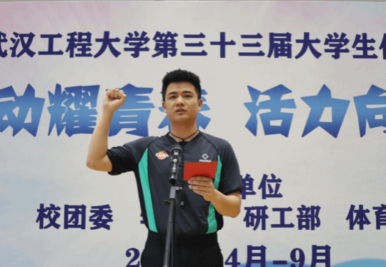 裁判员代表邓天傲、运动员代表甘熊能分别进行了宣誓。他们表示作为运动员一定会努力拼搏、挑战自我、勇夺佳绩;作为裁判员一定会秉承体育精神,公平公正裁决。