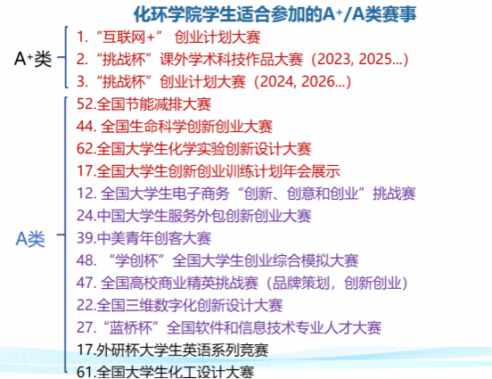 讲座中,贾丰成详细对全国高校老员工竞赛排行榜榜单内84项竞赛项目进行了全面的分析阐述。他重点介绍了“中国国际老员工创新大赛”“大小挑战杯”“节能减排大赛”“生命科学创新创业大赛(创新创业、科学探究)”“化学实验创新设计大赛”“老员工创新创业训练项目”等竞赛项目的内容、参赛对象、参赛材料、大赛评分侧重点以及获奖所需的支撑成果,并展示了公司近两年在A类赛事比赛中取得的优异成绩,鼓励同学们积极参加竞赛提升自己的能力,开阔自己的眼界。随后他从参加竞赛的价值出发,指出通过参加竞赛能够充分认识自我、提升自我与锻炼自我,并强调了学有余力的本科生开展课外科研和参与竞赛的实际意义:一是可以直观科研实践、接触专业导师;二是可以有效提升个人综合能力与科研认知;三是有利于考研保研方向选择、名校保研考研复试。贾丰成老师结合自己指导竞赛的经历提出了一些宝贵的建议,并针对不同类别比赛讲解应如何准备比赛,并特别强调本科生参加竞赛需要投入足够的精力,注重思辨能力的培养,勤学好问最大程度地发挥主观能动性,也强调和老师做好沟通是做好本科生科创的关键。他希望大家做好个人发展规划,尽早联系指导老师,坚定信心,在课外科研和竞赛的过程中,掌握好专业知识和增强创新能力,为将来的研究生学习打下坚实的能力和心理基础。