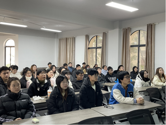 随后,张行荣通过浙江鑫甬生物化工股份有限公司的宣传片,分别从公司产品、公司文化、公司业绩、公司荣誉和公司未来发展计划五个部分向同学们进行了详细介绍,并现场解答同学们对入职要求、薪资福利等疑问,他希望通过此次讲座能给毕业生的就业带来一个新的选择,同时也欢迎各位同学加入鑫甬。