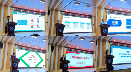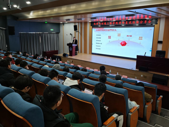 在分享环节,6位研究生师兄师姐结合自身丰富的复试经历,毫无保留地向同学们传授了宝贵经验。他们从复试前的准备工作,如专业知识复习、英语听说能力训练、复试简历制作等方面,到复试过程中的面试技巧,包括如何回答专业问题、如何应对突发情况、如何展现自信得体的形象等,都进行了细致入微的讲解。师兄师姐们还分享了自己在复试中的真实案例,生动有趣又极具参考价值,引得台下同学们频频点头,认真记录。
