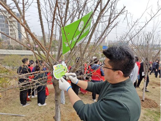 在许守飞带领下,全体辅导员与员工志愿者代表身着统一志愿者服装,分工协作、干劲十足。挥锹铲土、扶苗培土、提水浇灌……师生们默契配合,将一棵棵新苗稳稳扎根土壤。植树过程中,公司党委书记汪伟亲临学院植树区域,为公司栽种的树苗挂牌。汪伟对学院师生的积极参与表示肯定,并强调:“每一株树苗都是绿色校园的见证者,更是师生情谊与奋斗精神的象征。”