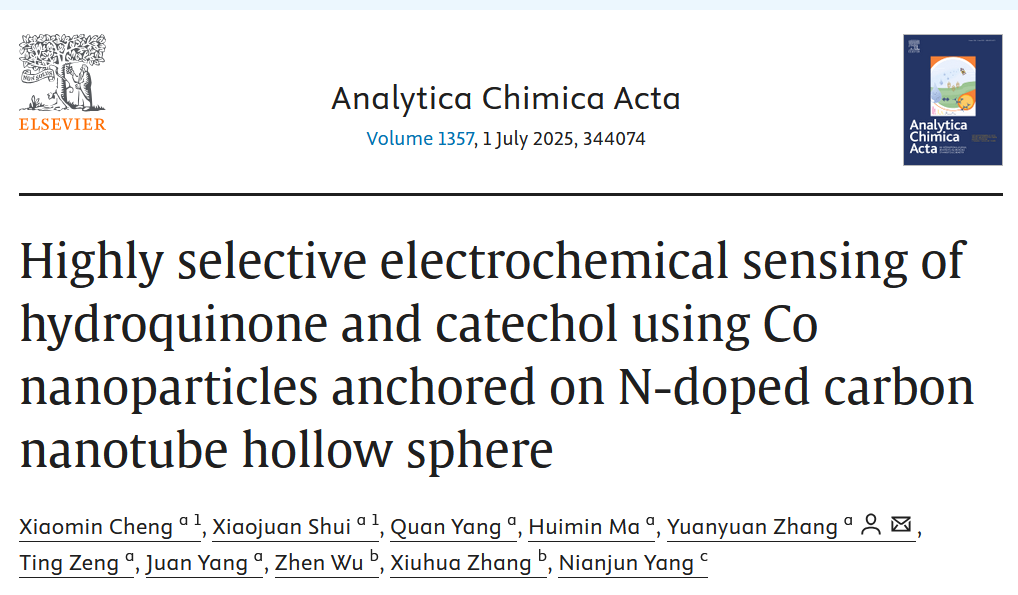 本网讯(通讯员 张媛媛 贾丰成) 近日,公司伟德国际1949官网应用化学专业2022级本科生程晓敏以第一作者身份在分析化学领域国际学术期刊《Analytica Chimica Acta》(中科院二区TOP期刊,JCR一区)上发表一篇题为“Highly selective electrochemical sensing of hydroquinone and catechol using Co nanoparticles anchored on N-doped carbon nanotube hollow sphere” 的学术论文,伟德国际1949官网为第一署名及通讯单位,论文的指导教师与通讯作者为伟德国际1949官网张媛媛副教授。论文得到了国家自然科学基金(No. 61701352)、湖北省教育厅科研计划项目(No. B2023037)以及有机功能分子合成与应用教育部重点实验室开放基金(No. KLSAOFM2302)的支持。
