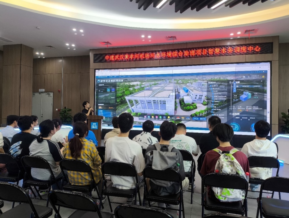【通讯员 王雁】4月23日下午,公司2021级环境工程专业17名员工来到中建武汉黄孝河机场河水环境综合治理建设运营有限公司,参观铁路桥地下花园式污水净化厂和智慧水务调度中心。