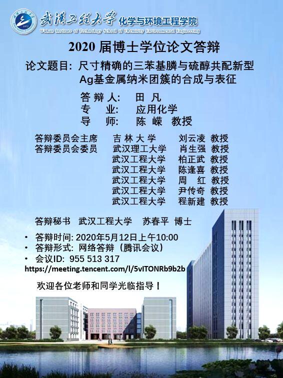 2020届伟德国际1949官网田凡博士学位论文答辩公告
