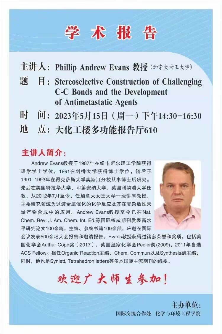 【研究生创新论坛】Stereoselective Construction of Challenging C-C Bonds and the Development of Antimetastatic Agents