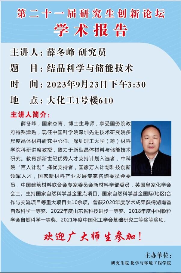 【第二十一届研究生创新学术论坛】结晶科学与储能技术