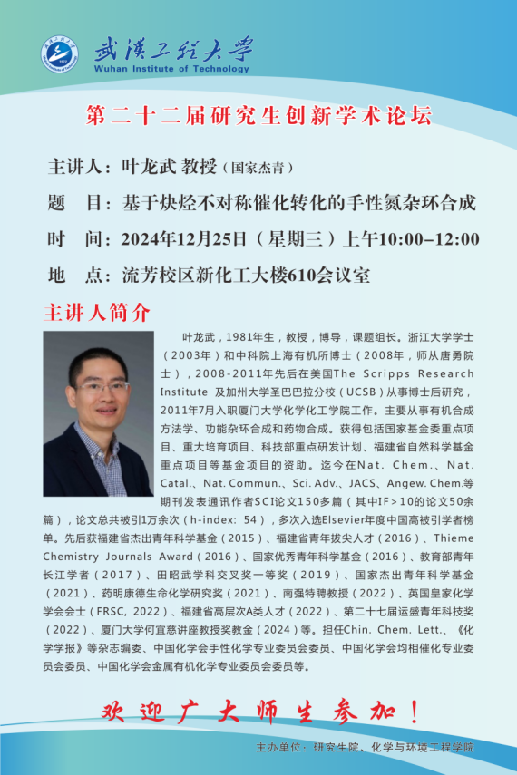 【研究生创新论坛】基于炔烃不对称催化转化的于性氮杂环合成